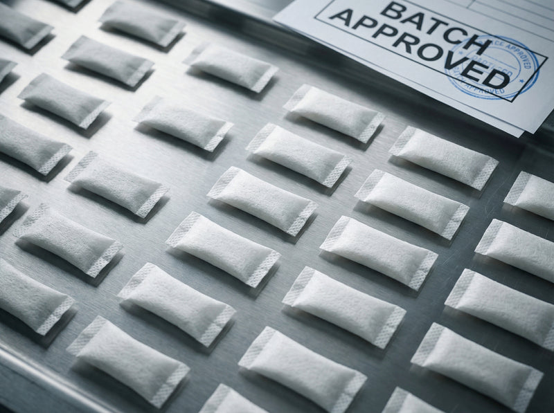 Every pouch meets exact specifications. Safe, consistent, reliable. We manufacture at a cGMP certified, FDA registered facility in the USA.